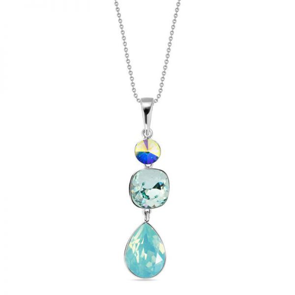 Deze ketting is volledig gemaakt van 925 sterling zilver, de allerbeste kwaliteit zilver, en bestaat uit meerdere slanke schakels die fijntjes op elkaar aansluiten en samen een stevig geheel vormen. Aan de voorkant zit een langwerpige hanger die bestaat uit meerdere “Man made Crystals” . Het oogje bovenaan is gemaakt van zilver, met daaronder een rond gekleurd “Man made Crystal” dat mooi glinstert, met daaronder een vierkant lichtgroen “Man made Crystal” met sterk geronde hoeken en helemaal onderaan een druppelvormig mintkleurig “Man made Crystal” dat mooi glinstert. Deze ketting is afkomstig van het merk Spark Jewelry en behoort tot de Classico collectie. Deze ketting is aan de achterkant voorzien van een handige karabijnsluiting. Spark Jewelry staat garant voor de mooiste sieraden die gebruik maken van de schitterende “Man made Crystals”